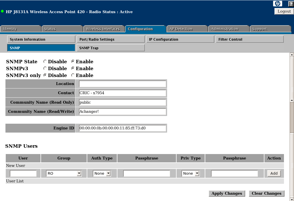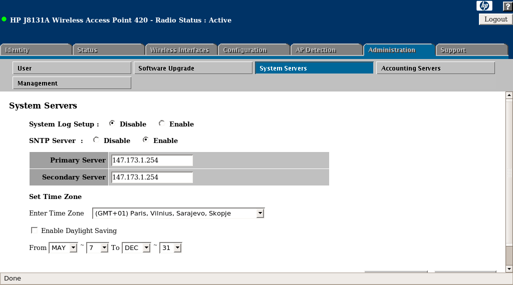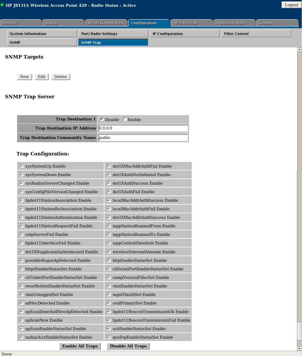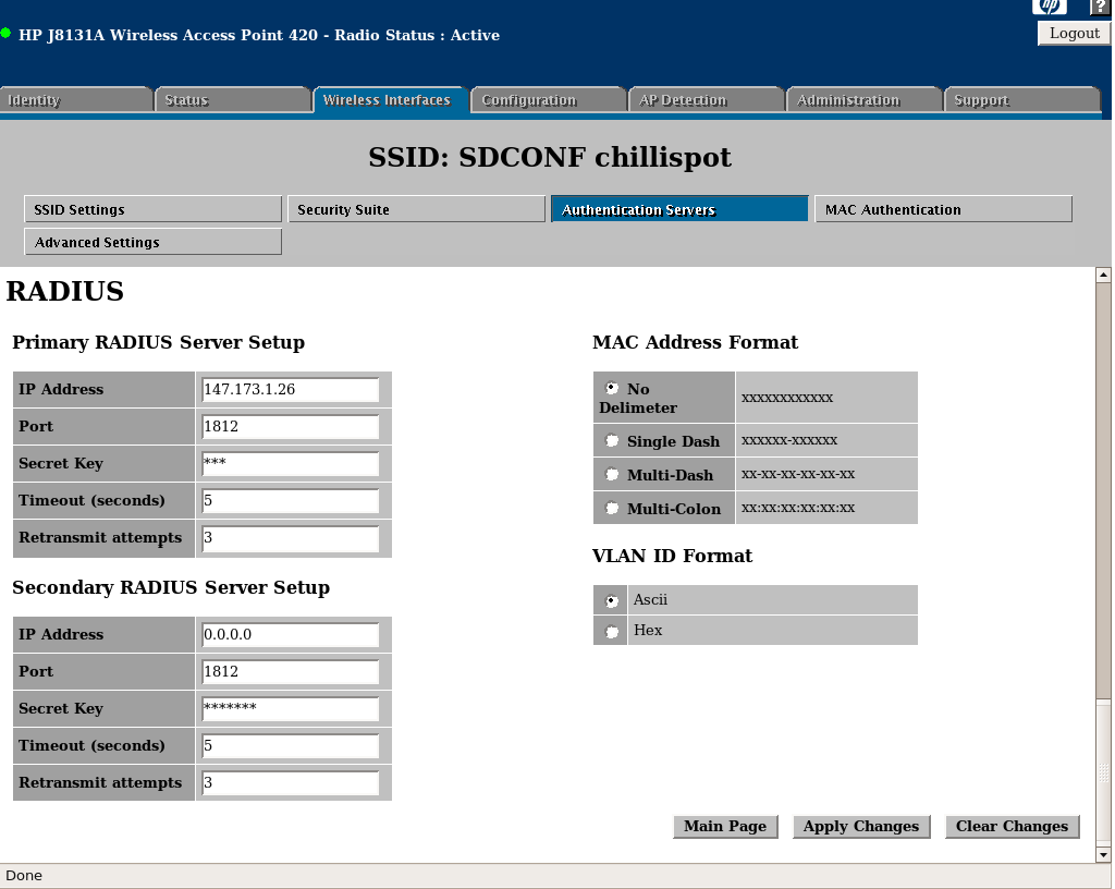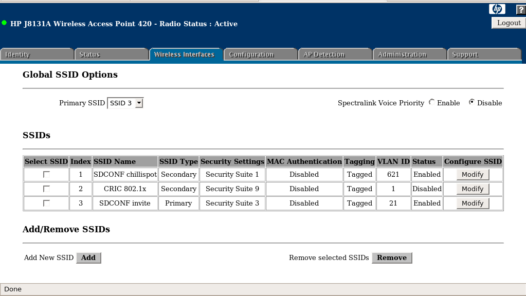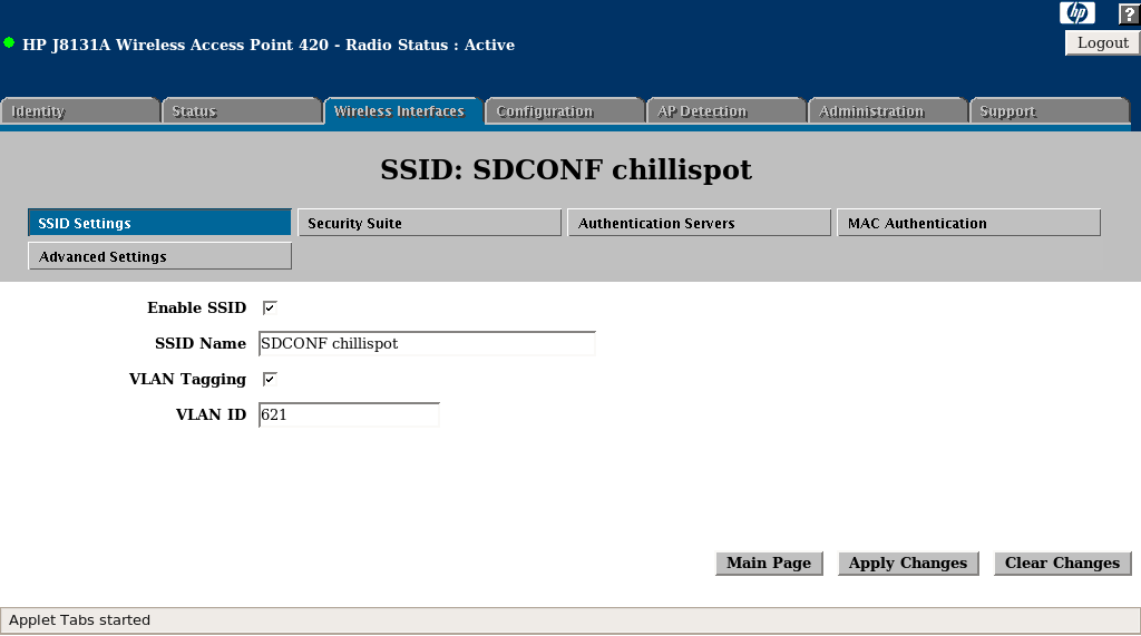 Comme nous l'avons vu c'est sur cette page que nous entrerons les informations relatives a l'SSID et au VLAN qui lui est attribué nativement. |
